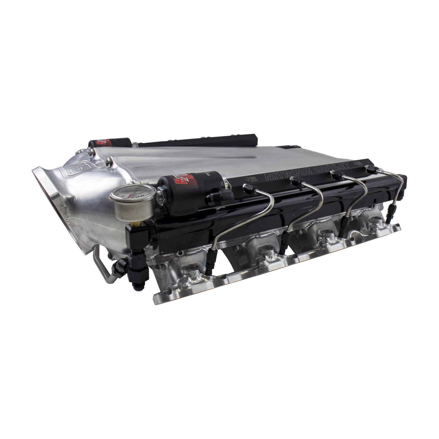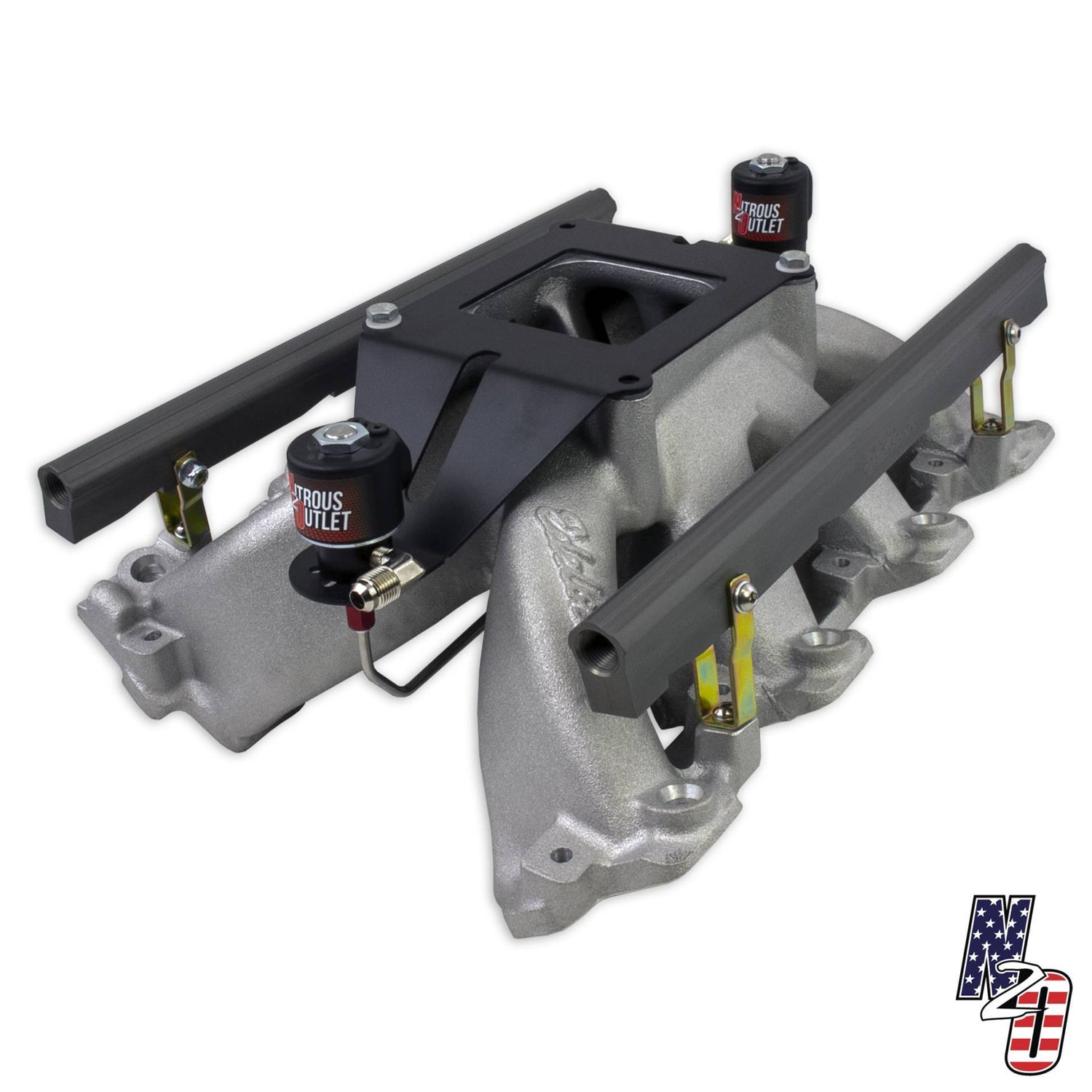 Collection of MSD 2702 Atomic Airforce Intake Manifold plumbed with Nitrous Outlet Direct Port Nitrous Systems.