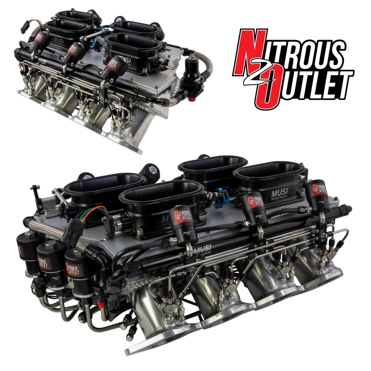 Collection of Brian Tooley Racing Equalizer 1 Intakes plumbed with Nitrous Outlet Direct Port Nitrous Systems.