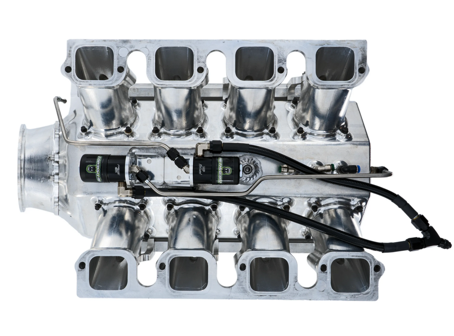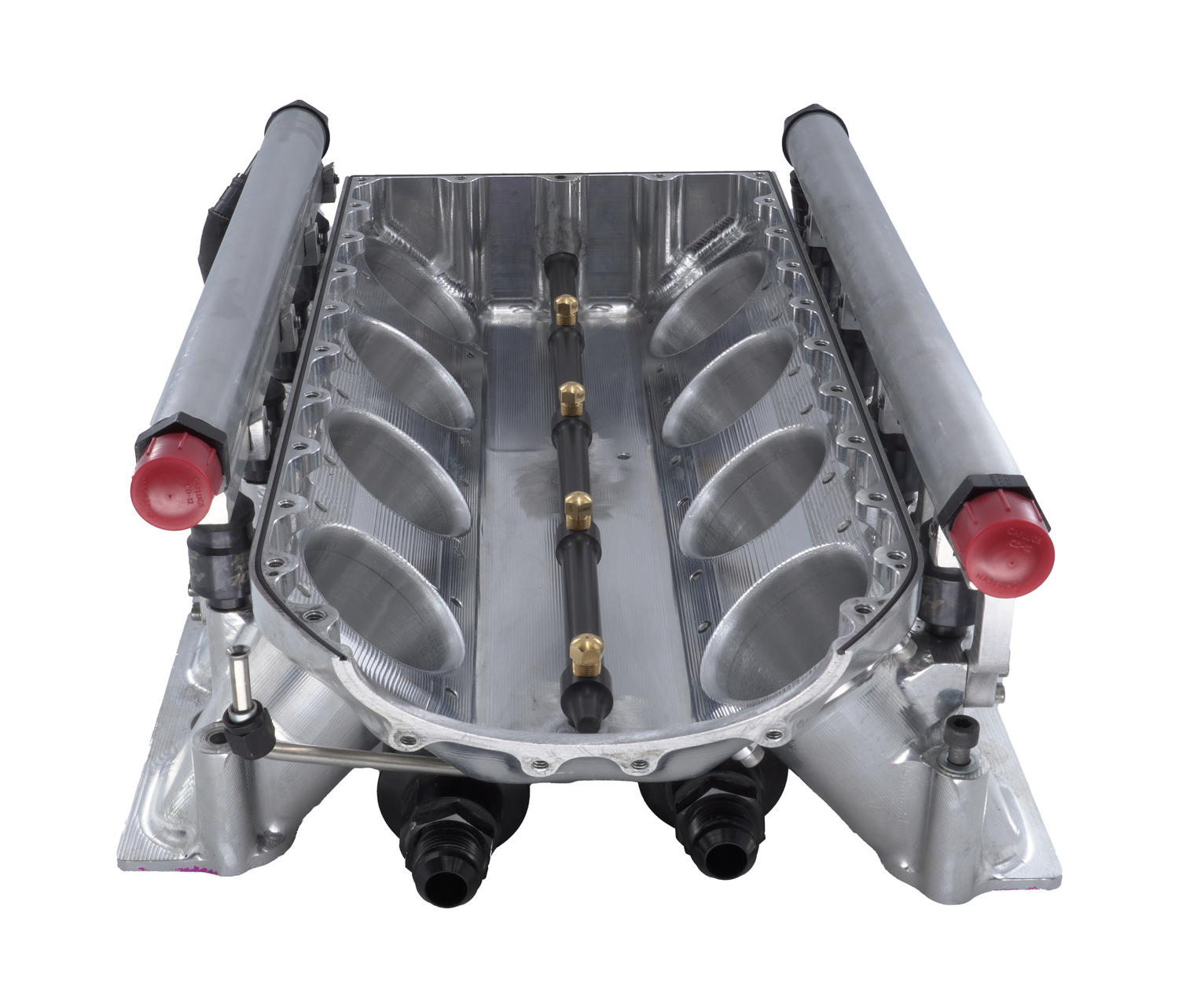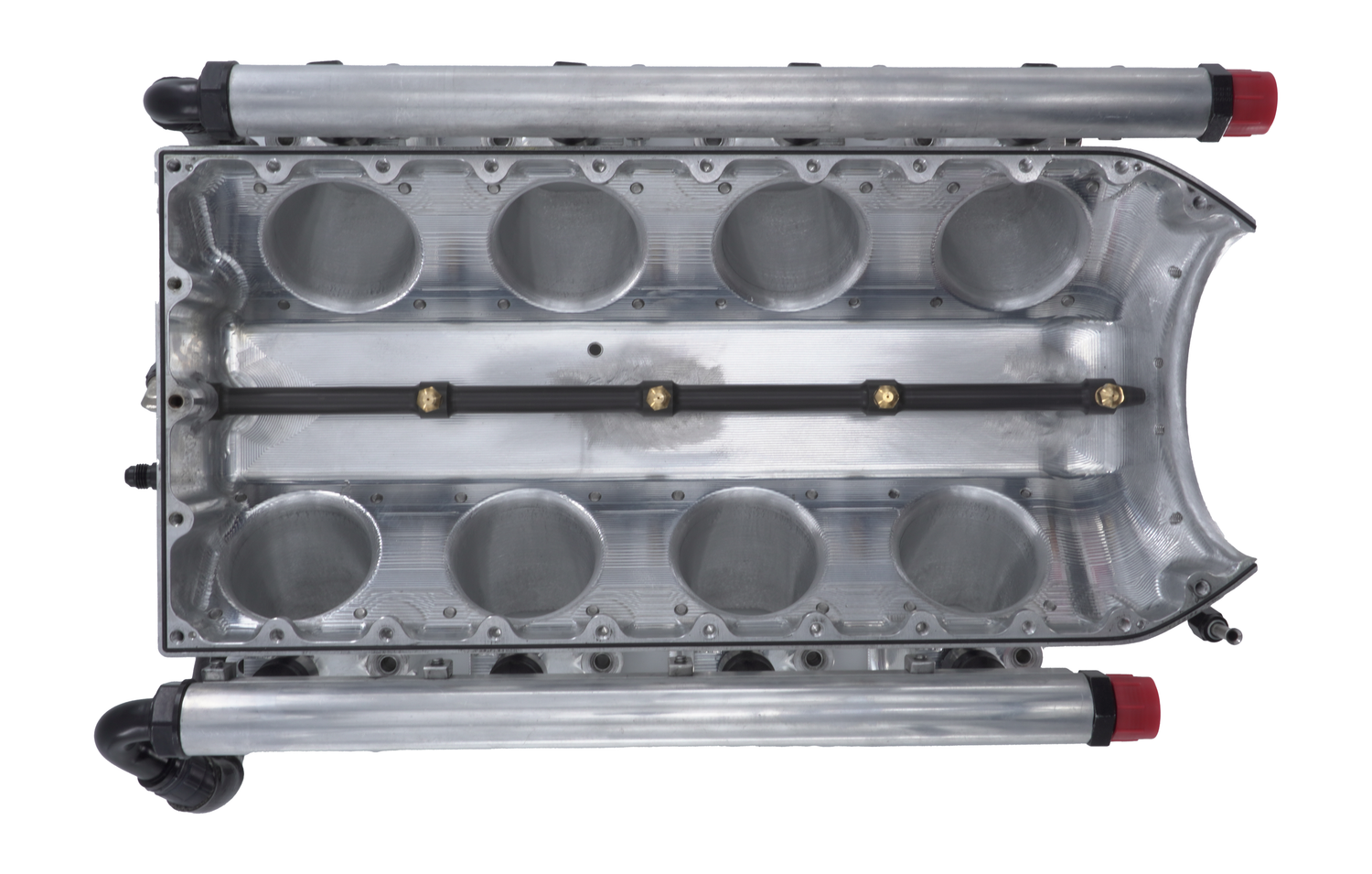 Crafted entirely in-house at MethHeadz, our inner plenum mist bar system is machined into the lower portion of the intake plenum, with discharge nozzles strategically aimed upwards to counter the incoming airflow. Constructed from high-grade billet aluminum and hard-coated for exceptional durability, our mist bar is built to withstand the rigors of methanol use.