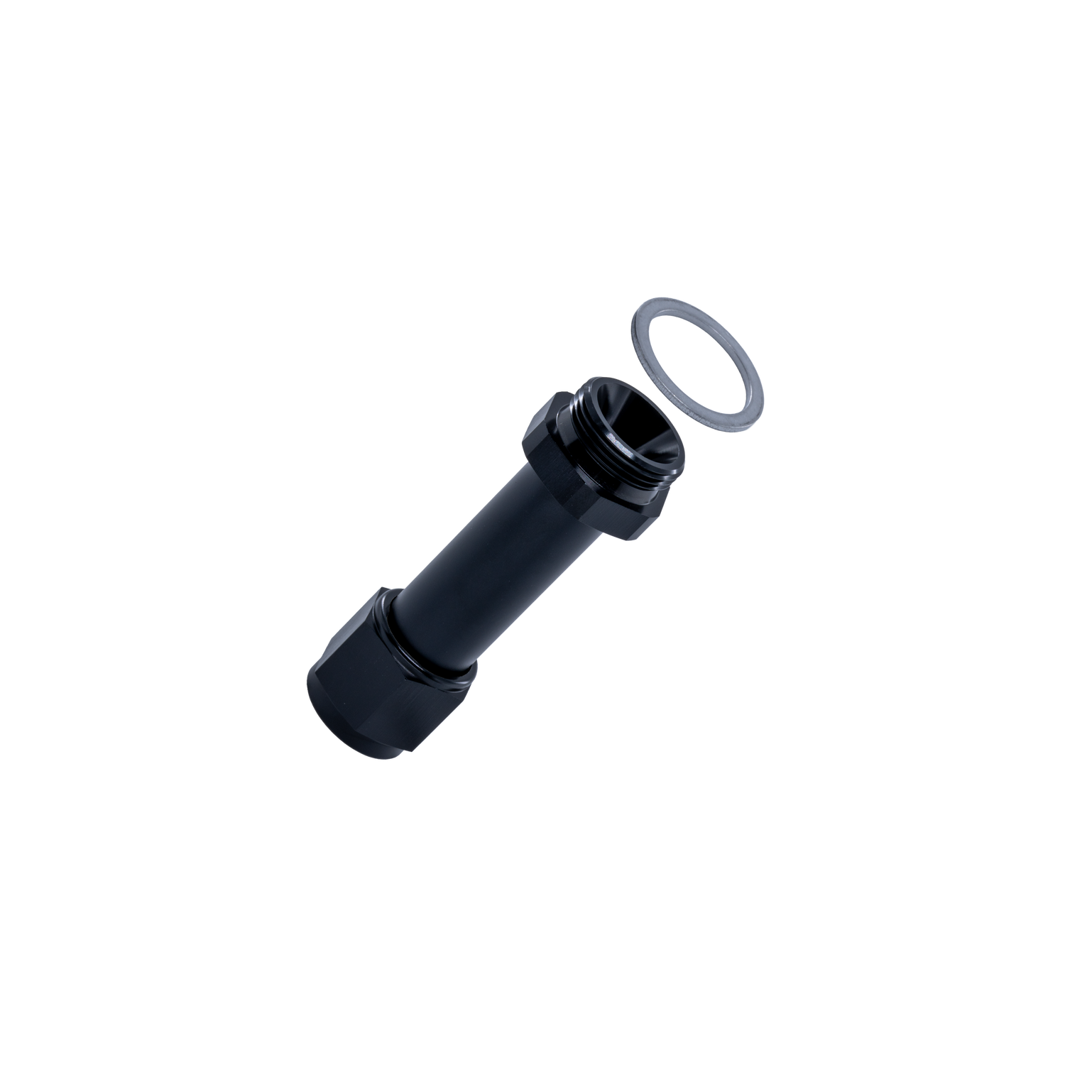 The Flo Supply 7/8-20IN Male To 8AN Female Carburetor Feed Adapter is precision-machined from billet aluminum and black anodized finish. Featuring a 7/8”-20 male thread to 8AN female thread configuration and measuring 3” in length, it provides a seamless fit and compatibility with standard fuel systems. Each adapter includes a sealing washer for a leak-free connection, making installation straightforward and reliable.