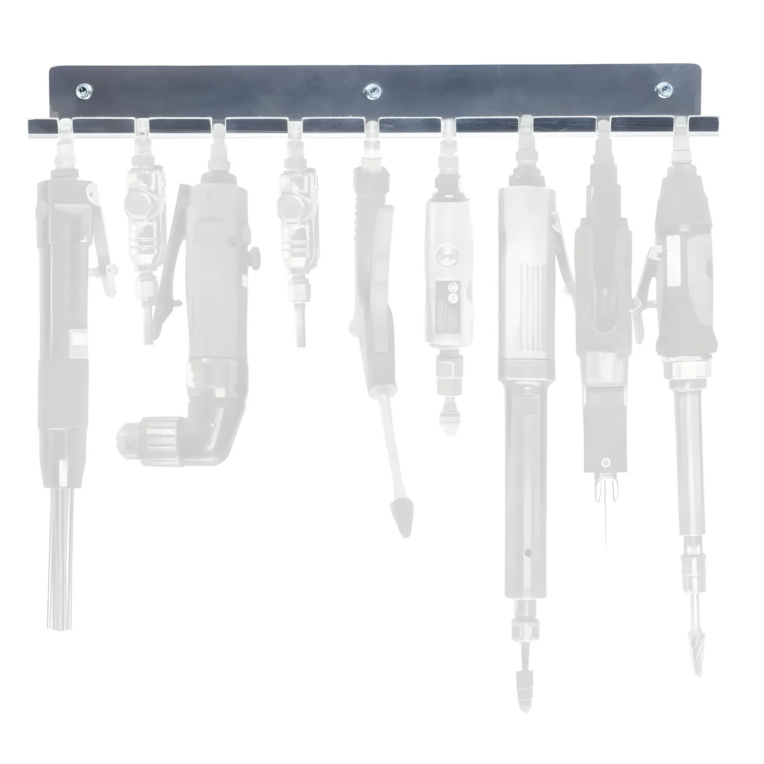 Introducing the 860 Performance Air Tool Holder – a versatile solution for your workshop or trailer. Crafted from robust .090" thick aluminum, it's designed to hold up to 9 air tools with ease. With mounting holes spaced 16" on center, installation is a breeze. Organize your tools efficiently and enhance your workspace with this durable and practical air tool holder. Ideal for shops or trailers, it's a must-have for any workspace where accessibility and organization are key. Available in a Raw finish or with a sleek powder-coated matte texture black finish for added style and durability.