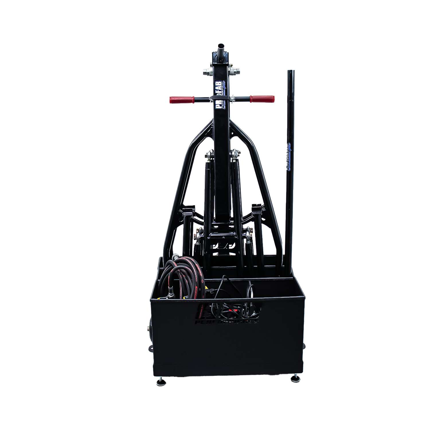 The 860 Performance Products Race Jack Caddy is built for racers who need durable, efficient gear transport and storage. Constructed from TIG-welded .125" and .250" aluminum with a 2" x 2" tubular frame, it offers maximum strength at just 44 lbs. Dual jack pockets, a pump & hose compartment, and edge guards protect your equipment while keeping everything organized. Heavy-duty 5" wheels with roller bearings and a low center of gravity allow for smooth, stable movement like a dolly. Stainless steel axles, height levelers, and side-mounted hook plates provide secure, reliable performance in the shop or at the track. A removable interlocking handle keeps shipping compact and affordable. Finished in raw aluminum or black textured powder coat, this caddy is made to perform and built to last.