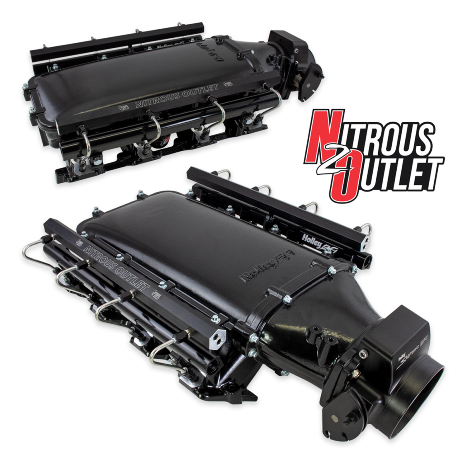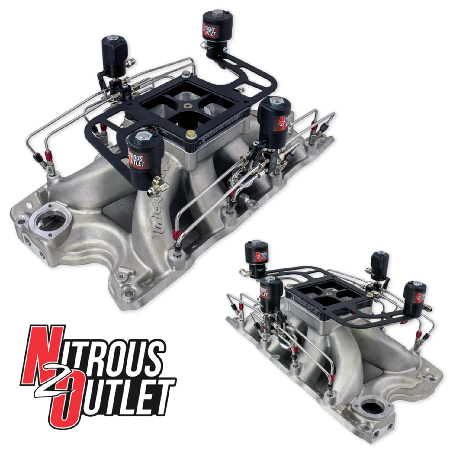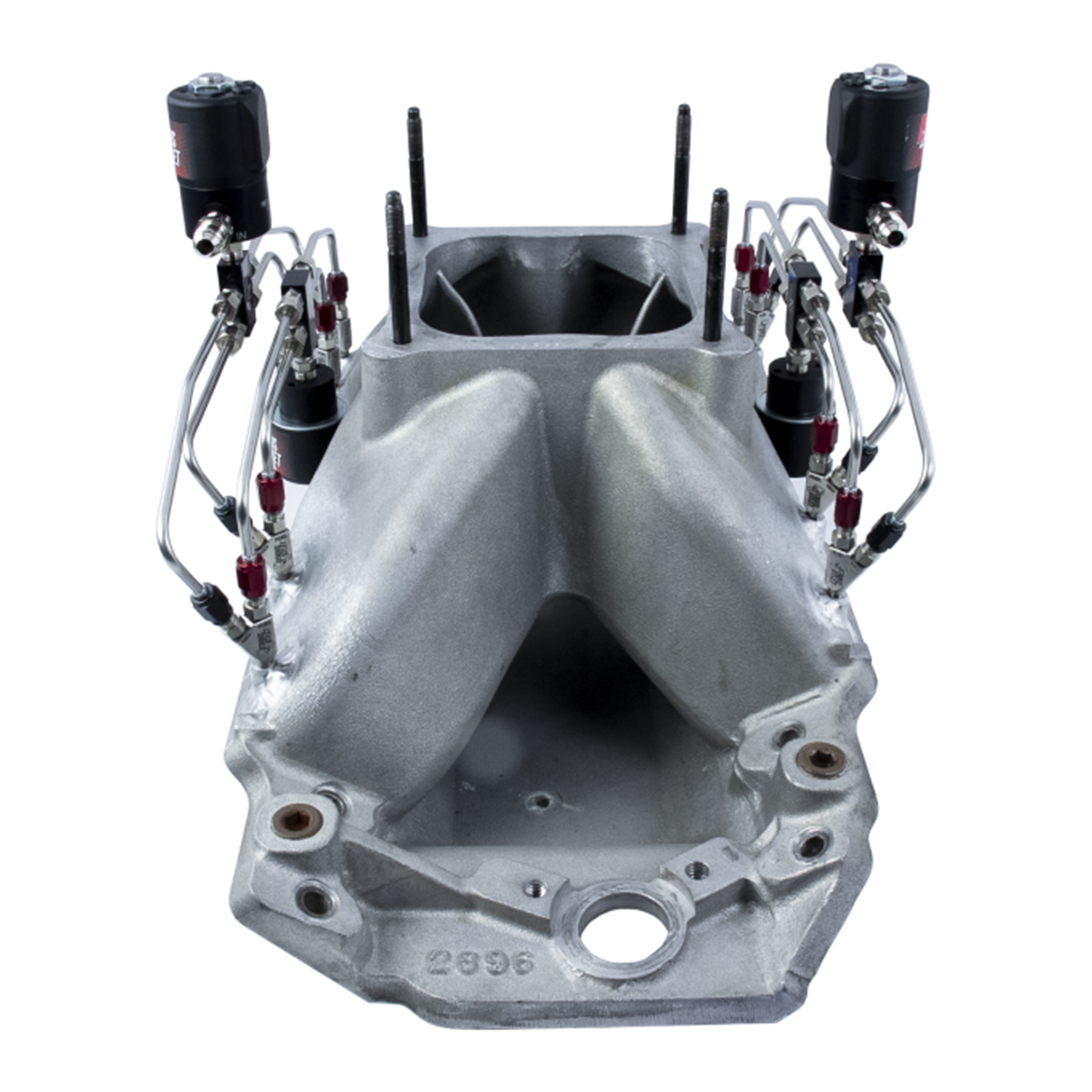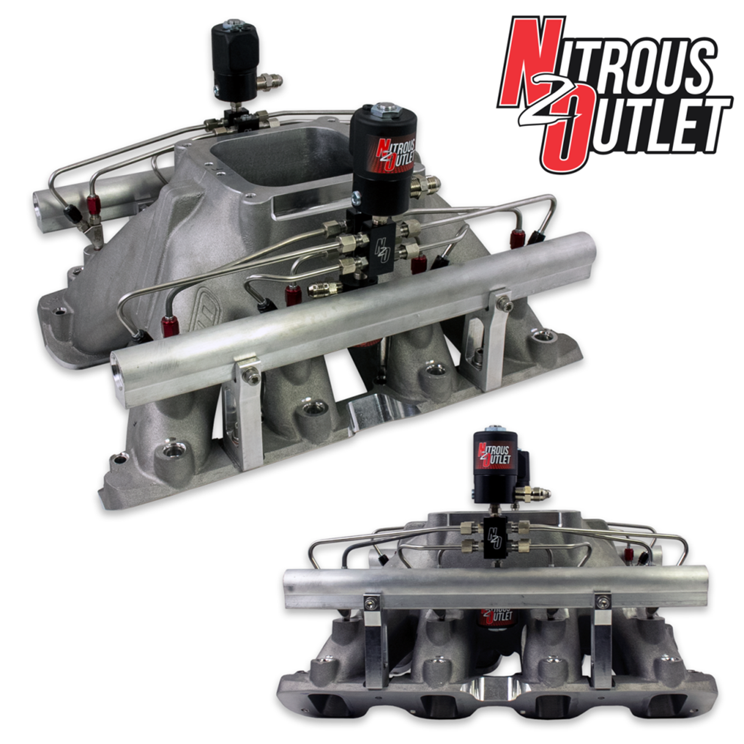 The Nitrous Outlet Direct Port System is custom built to each intake manifolds unique requirements. The Direct Port is designed to work with just about any intake manifold The installation of the Direct Port System requires sending the intake manifold to Nitrous Outlet. Nitrous Outlet machines the intake and components, then installs them making sure that the discharge ports perfectly align into each intake runner.