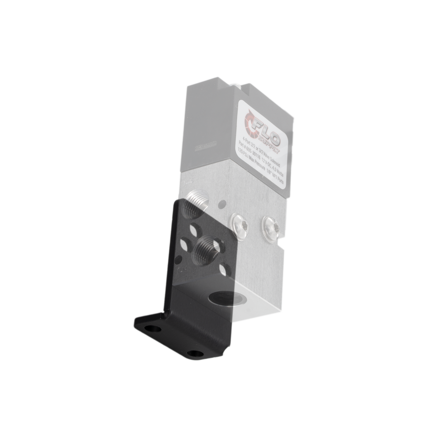 The Flo Supply 90 Degree Solenoid Bracket for Single 4-Port Solenoid Valve is precision cut from .090 aluminum and powder-coated black for lasting durability. It securely mounts our Flo Supply 4 Port Solenoid Valve - (2/2 or 3/2 Valve), which can be used in controlling cylinders, actuators, and other systems. Complete with all necessary mounting hardware, it ensures an easy, hassle-free installation and mounting.
