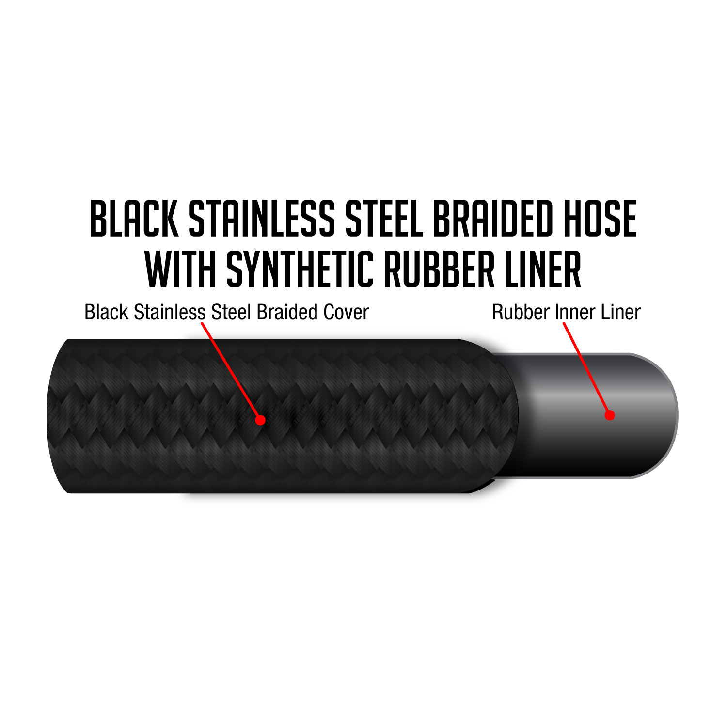 SKU: 60-58201-BLK-04- Black Stainless Steel Braided Outer Cover With Synthetic Rubber Inner Liner
