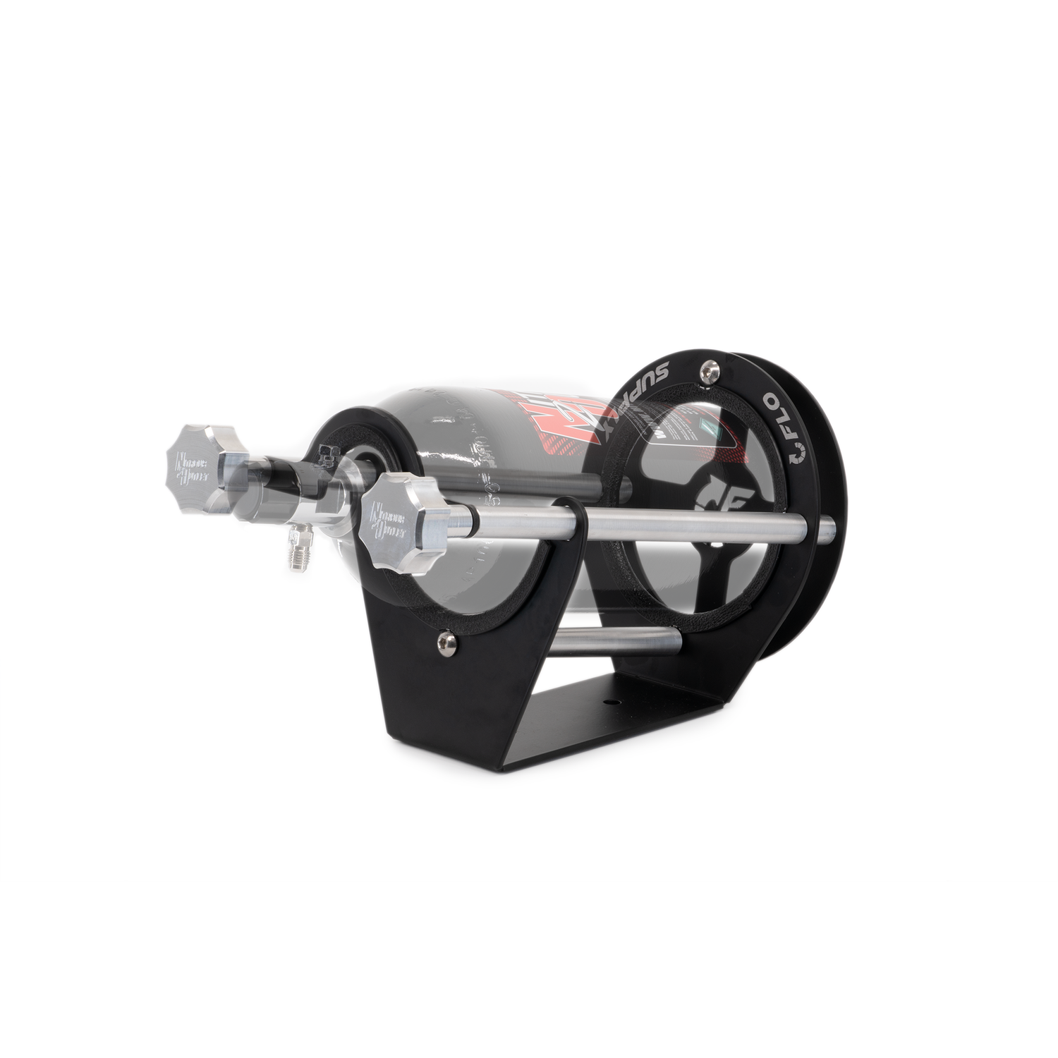 The Race-Light Bottle Bracket series is designed to provide a light weight, ridged mounting option for aluminum 2.5lb C02 Bottles. The Race-Light Bottle brackets are constructed of light-weight powder coated aluminum, 6061 Billet aluminum, and stainless-steel fasteners with a flexible edge trim to protect the bottle from scratches. These brackets are meant to be mounted vertically in your application.