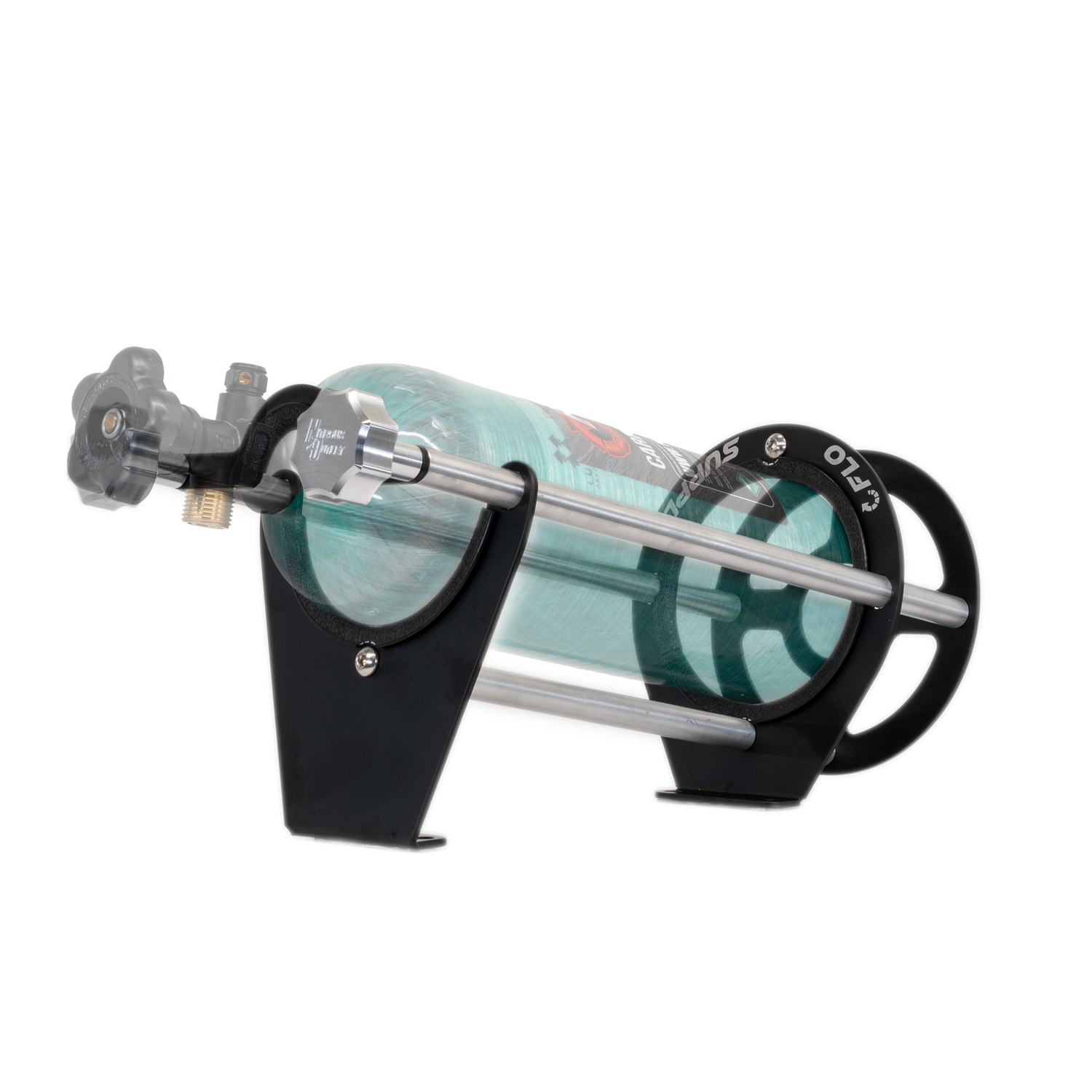 The Race-Light Bottle Bracket series is designed to provide a light weight, ridged mounting option for aluminum 4.5lb Composite C02 Bottles. The Race-Light Bottle brackets are constructed of light-weight powder coated aluminum, 6061 Billet aluminum, and stainless-steel fasteners with a flexible edge trim to protect the bottle from scratches. These brackets are meant to be mounted vertically in your application.