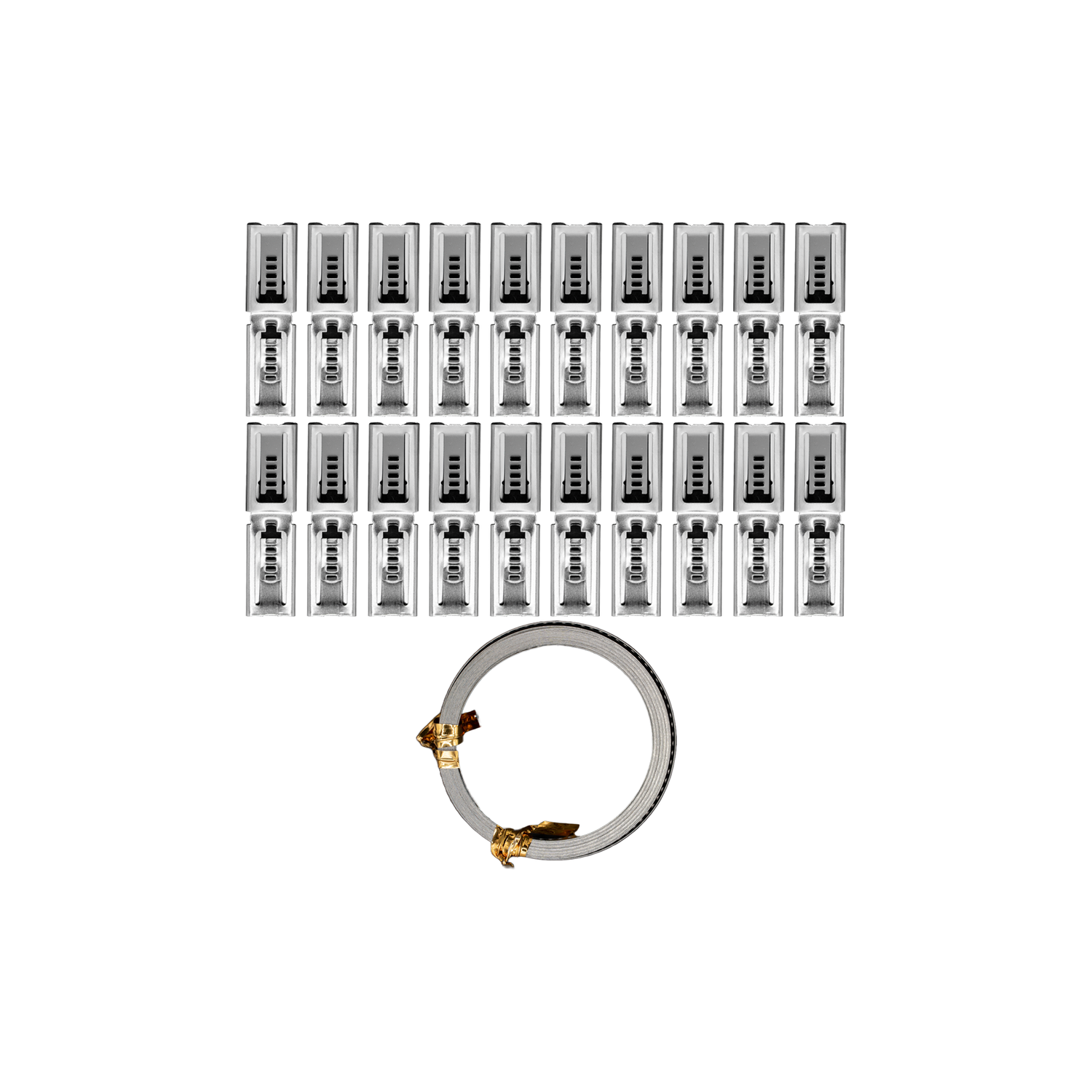 The Flo Supply roll of stainless steel band and clamps are designed to be used on products that require a light duty clamp to hold in place. Great for header wrap, dust boots, and other similar items. Installation is as easy as pulling tight, through the clamp and cutting to length.