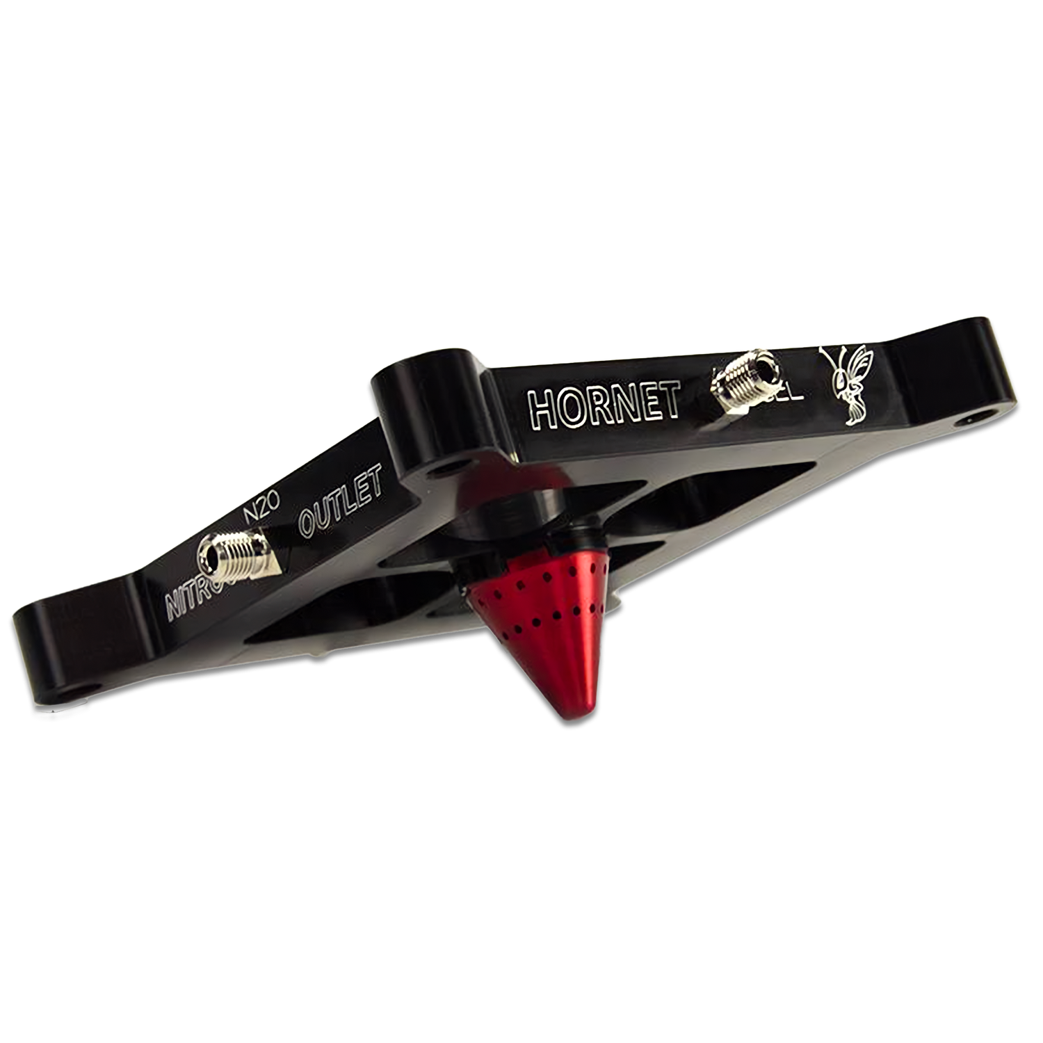 The Hornet 2 is based on the hugely successful Stinger Nitrous Plate lineup and follows the ideology that nitrous plates are not one-size-fits-all. It is designed to saturate the incoming air flow by placing the discharge cone at the top of the intake throat while discharging the nitrous horizontally across the intake plenum in a 360° pattern.