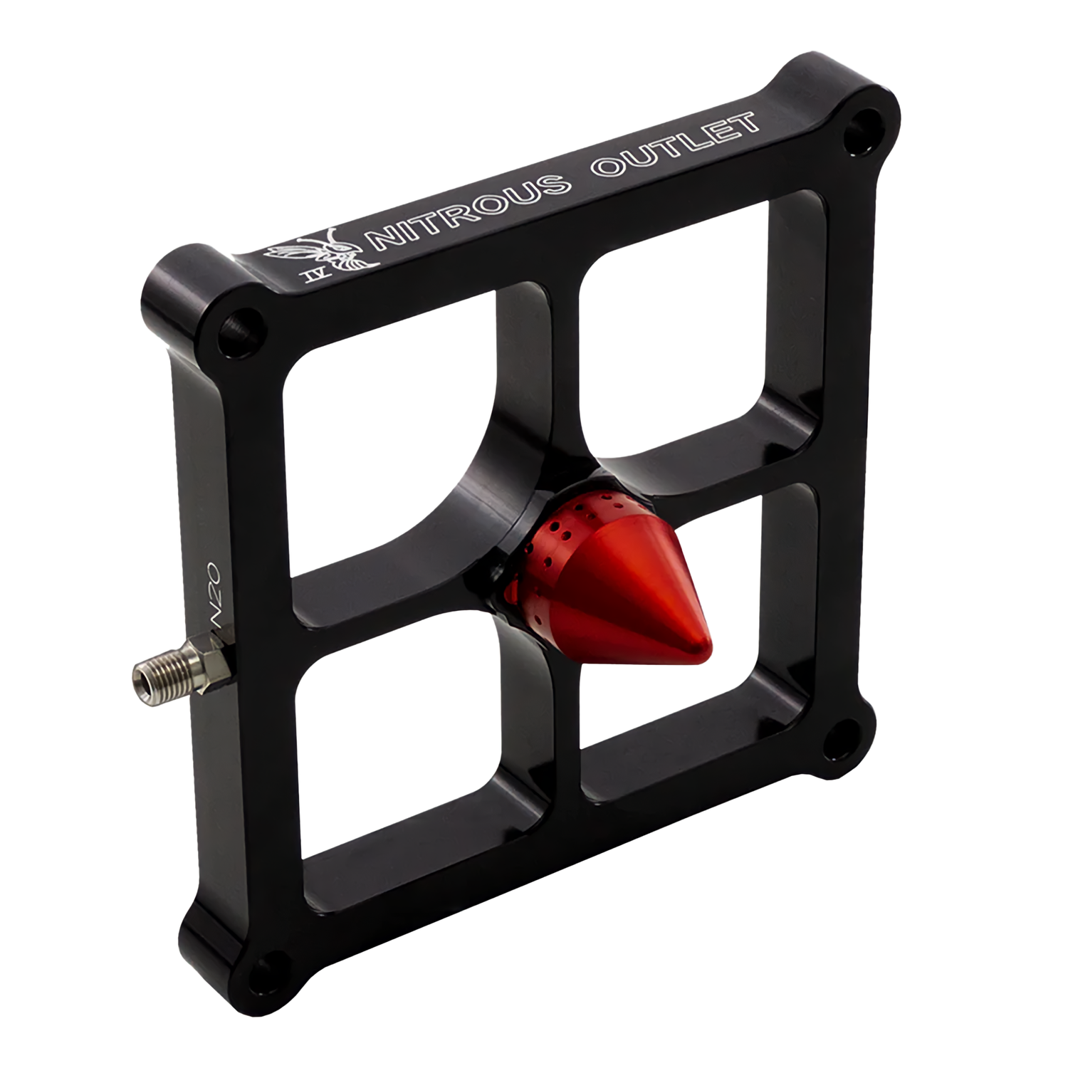 The Stinger 4 is an addition to the hugely successful Stinger Nitrous Plate lineup and is based on the same ideology that nitrous plates are not one-size-fits-all. It is designed to work with engine combinations that have airflow distribution issues and also have intake manifolds with a taller wall height between the top of the intake runner to the carburetor flange.