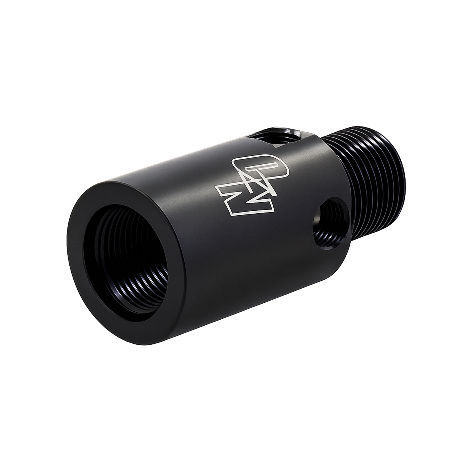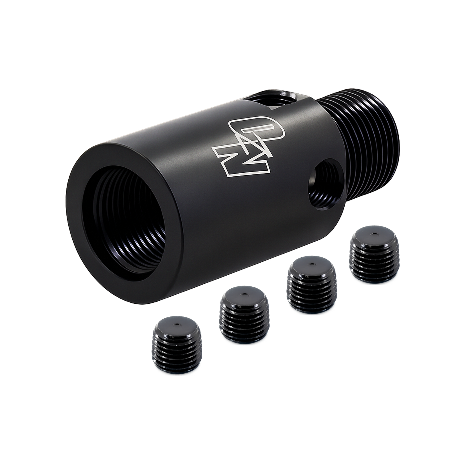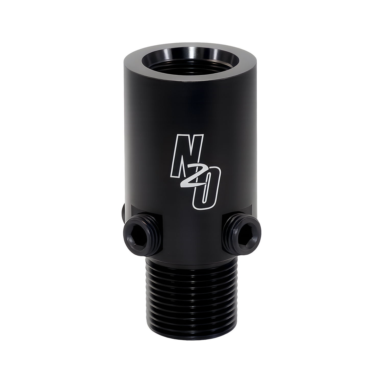Machined from lightweight 6061 billet aluminum, the adapter features four 1/4" NPT check valve ports on the side of the body. These ports allow multiple installation positions for the Nitrous Outlet check valve, making it easy to achieve proper clearance and fitment depending on bottle orientation and system layout.