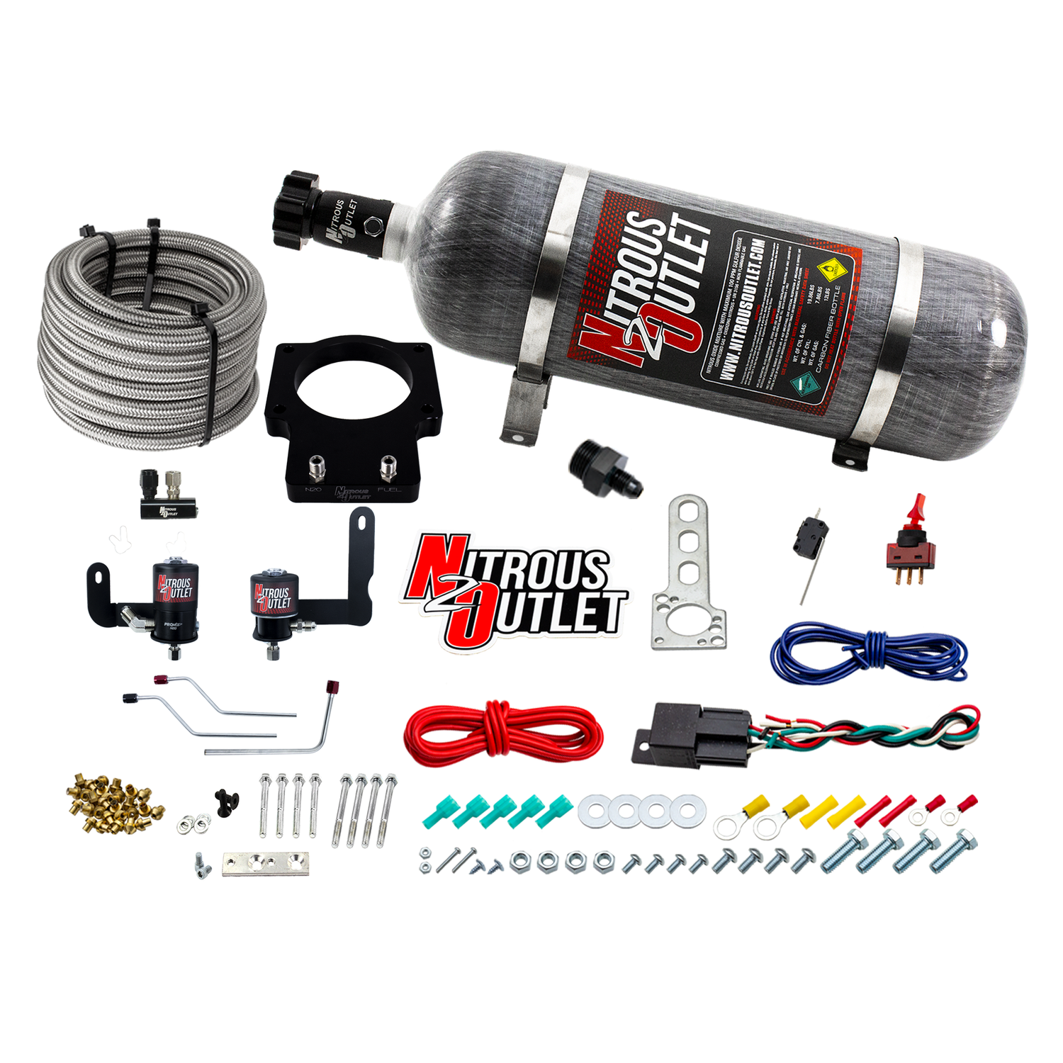 Complete System. This system includes all of the necessary components; billet aluminum nitrous plate, 50-200 HP jetting, hardware, gaskets, and wiring to properly install a wet nitrous system on your vehicle.