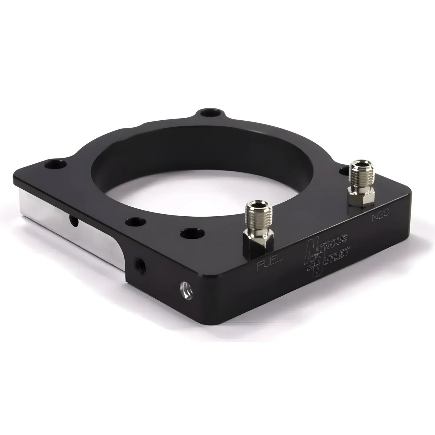 Wet Nitrous Plate. This system includes a billet aluminum plate to fit 6.4L Hemi intakes with an 85mm throttle body and is capable of flowing up to 400 HP of nitrous. Each billet plate has a black anodized finish with laser etched logo and fuel/nitrous labels.