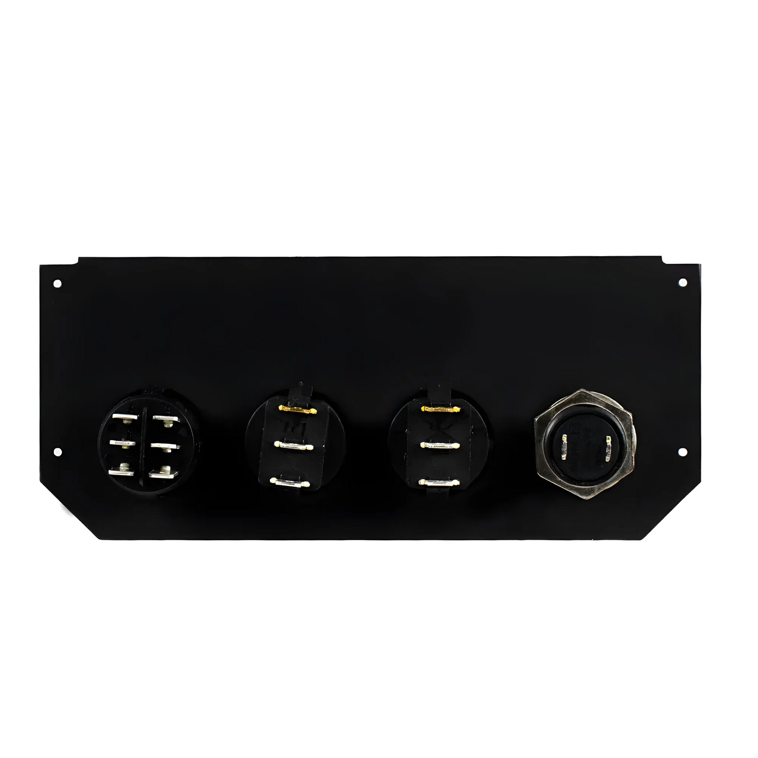 This panel has 2 LED rocker switches for system arm and heater activation, a momentary switch to control remote bottle opener, and a red push button for system purge.