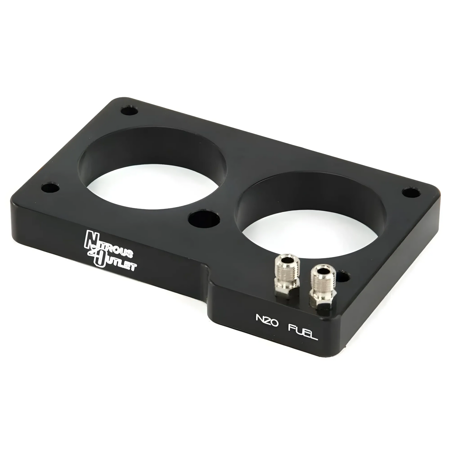 Wet Nitrous Plate. This system includes a billet aluminum plate to fit stock 1999-01 Cobra, 03-04 Mach 1 4Valve intakes and is capable of flowing up to 400 HP of nitrous. Each billet plate has a black anodized finish with laser etched logo and fuel/nitrous labels.