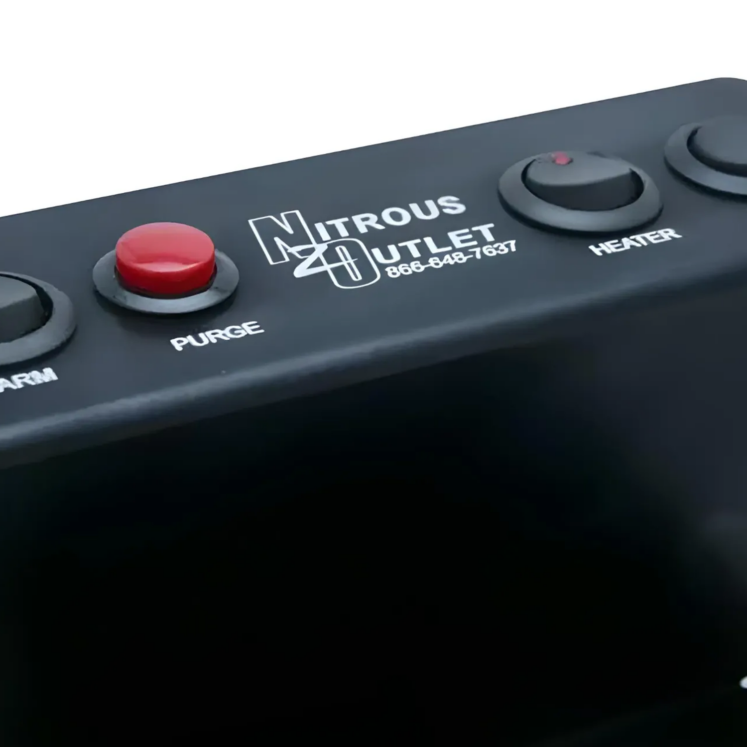 Our switch panels are made from water jet cut aluminum and have a black anodized finish with laser etched button labels and Nitrous Outlet logo.
