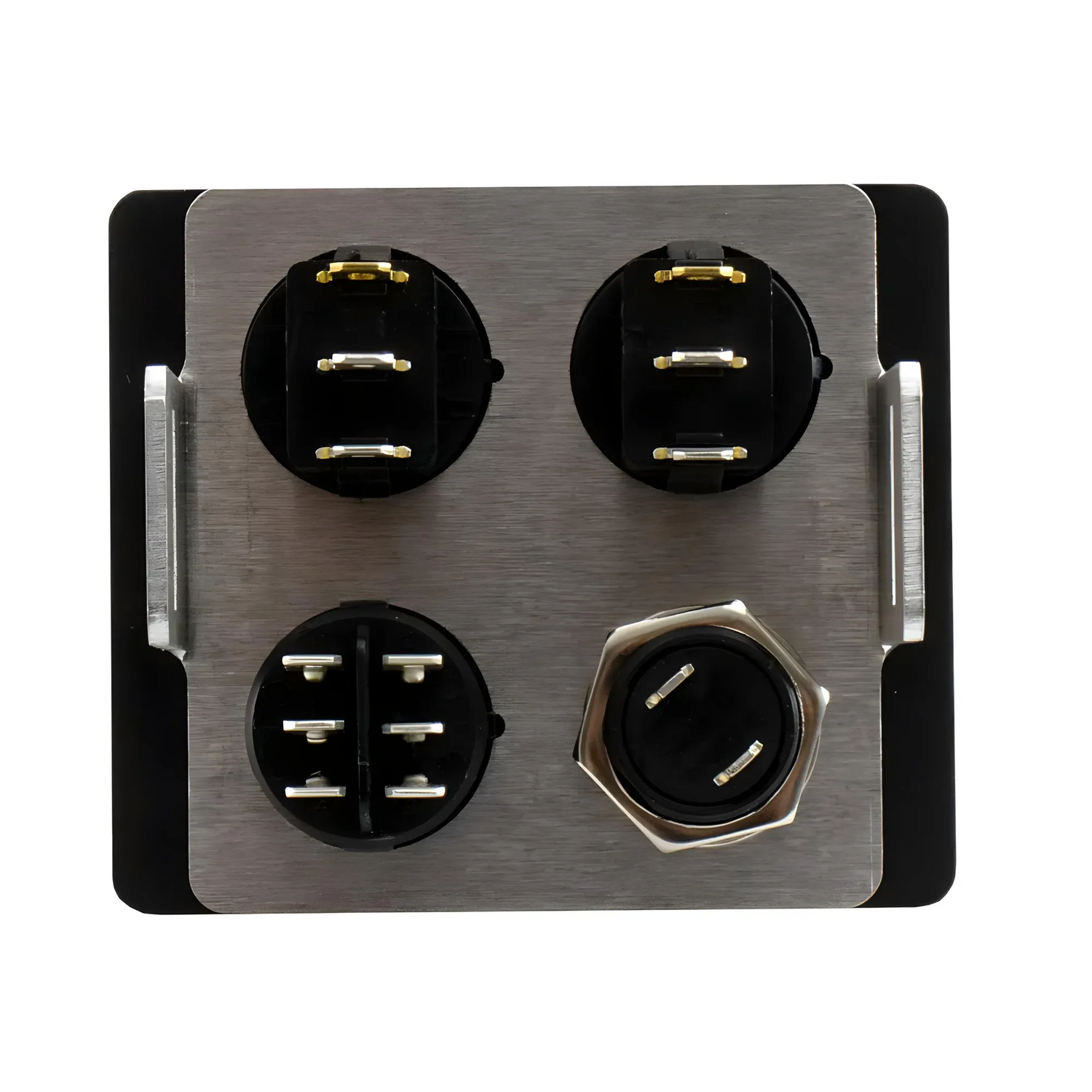 This panel has 2 LED rocker switches for system arm and heater activation, a momentary switch to control remote bottle opener, and a red push button for system purge.