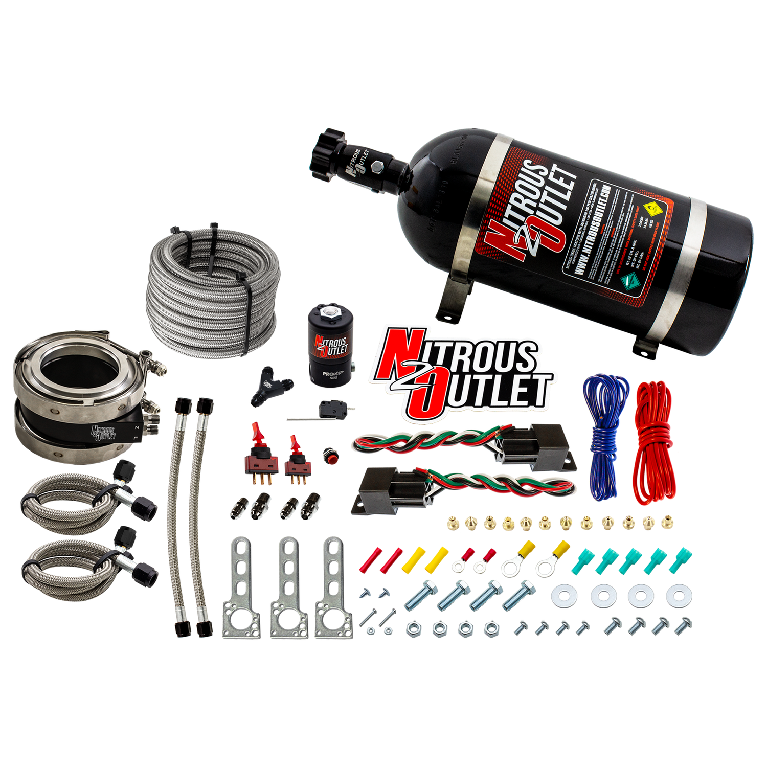 Complete System. This system includes everything needed to add up to 400 HP to vehicle. All hardware, oringed vband flanges and clamps, wiring, 50-400 HP jetting, solenoids, and hoses.