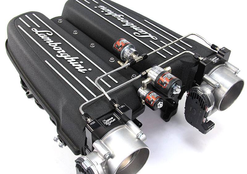 Application. This plate is designed to fit the stock Lamborghini 2008-2019 Lamborghini Gallardo / Huracan and 2009-2015 Audi R8 intakes. This plate will work with any brand wet system and has 3AN inlet fittings for fuel and nitrous.