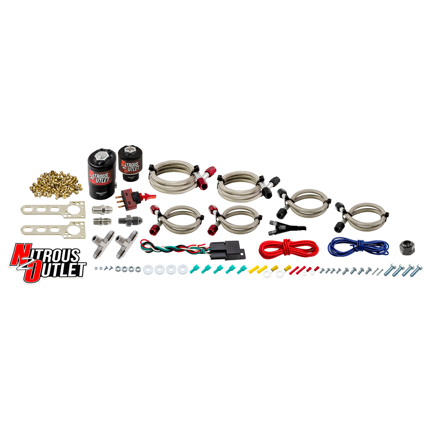 Application. Nitrous Outlet wet dual stage conversion is designed to upgrade your current single stage system to dual stages. Comes complete with 400 HP solenoids, 250 HP 1/8 NPT nozzle, nozzle adapter, solenoid brackets, hoses, electrical, hardware, and jetting from 35-150 HP.