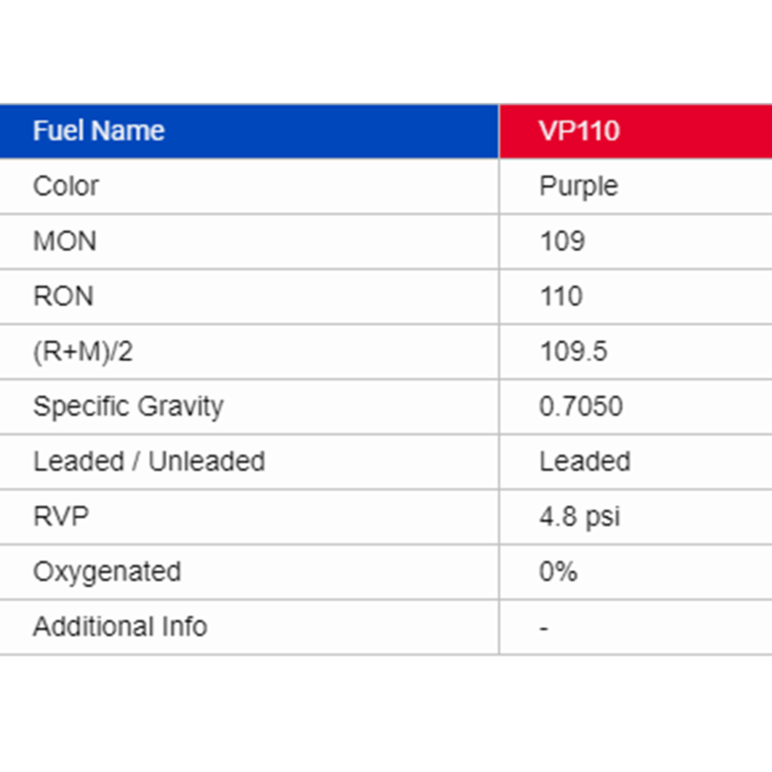 We formulate VP 110 octane fuel for use in naturally aspirated engines with compression ratios up to 12:1. There’s nothing standard about this 110 race fuel - it reflects the consistent quality racers rely on from VP products.